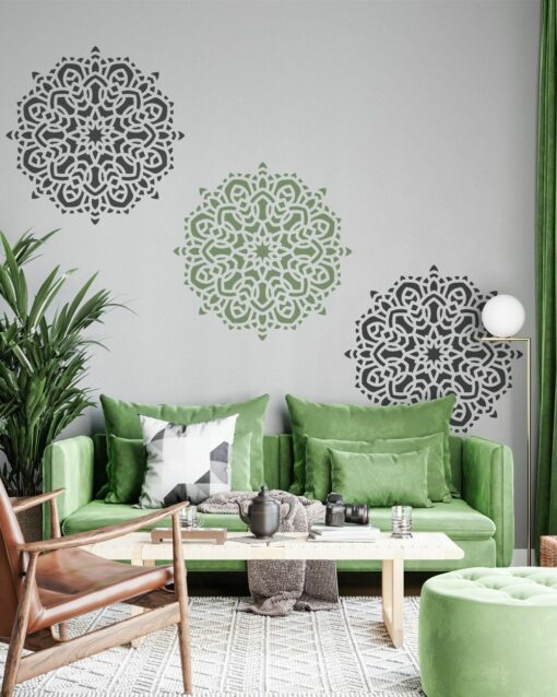 Dă frâu liber creativității! Poți realiza o zone accent doar în dreptul mobilierului sau să vopsești un întreg perete, într-o cameră sau în mai multe spații pentru un design unitar. Șablonul poate să fie o tușă personală în toată amenajarea casei.